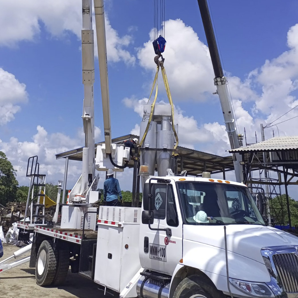 Cargadores hasta 12 toneladas, grúa camion y canastas de elevación certificadas para personal.
